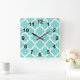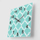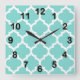 Horloge Carrée Turquoise Aqua Wht Moroccan Quatrefoil Pattern #5
