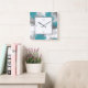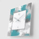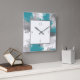 Horloge Carrée Turquoise Gris Abstrait