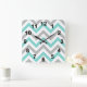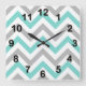Horloge Carrée Turquoise, Gris, Blanc grand motif chevron zigzag