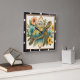 Cette charmante horloge murale carré présente une tortue cool prête pour les vagues, perchée à côté d'une planche de surf qui dit "LA VIE EST UNE PLAGE". Entouré de fleurs tropicales aux tonalités orange et bleu, ce garde-temps artistique capte à merveille une ambiance détendue et ensoleillée, idéale pour un décor côtier ou estival