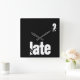 Trop tard Typographie des citations Funny 2 Late Texte Design minimaliste Noir et blanc Décor Maison Blanc sur Black Wall Horloge, vous pouvez changer le texte