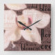 Horloge Carrée Typographie Orchidée intégrée, Floral, Blossom Pho