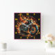 Une motocyclette vibrante engloutie dans les flammes à travers une surface sombre, son sentier enflammé illuminant la nuit avec énergie et passion.