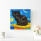 Horloge avec un chat Van Gogh dans le style de la nuit étoilée! Un chaton noir moelleux perche sur une table contre un ciel bleu nuit et une lune jaune. Un cadeau à la purr pour les amoureux de les chats et collectionneurs d'art hollandais !
