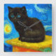 Horloge Carrée Van Gogh Style Starry Night Cat