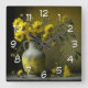 Horloge Carrée Vase antique de fleurs jaunes