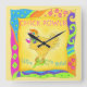 Horloge Carrée Vins un peu poule puissance jaune Whimsy