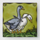 photo en céramique de l'ère vintage de deux canards, un gris, un blanc, sur un arrière - plan vert fougère.