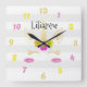 Produit très bien emballé et protégé. Bonne qualité, jolies couleurs. Horloge originale que je recommande vivement. Je n'ai pas personnalisé ce produit, je l'ai acheté comme il était proposé à la vente.