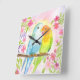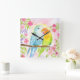 Horloge Carrée Watercolor Love Birds with Pink Flowers