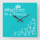 Je suis en retard ? Je suis une princesse. Horloges murales amusantes. bleu turquoise et blanc. Conception personnalisée / couleurs acceptées. Cliquez sur le lien de contact ci-dessus pour m'envoyer un message.