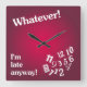 Horloge Carrée Whatever - I'm late anyway - Red Clock Design