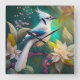 Horloge Carrée White Tufé Turquoise Wing Jay Imaginaire Bird