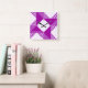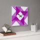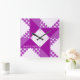 A quilt block pattern in shades of purple & white colors has matching numbers to mark each quarter hour. This design is only suitable for the square clocks.