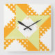 A quilt block pattern dans soft colors of orange & white brings this old fashioned art form into the 21st century. Matching numbers mark each quarter hour. This design is only suitable for the square clocks.