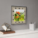 Belle image d'un oiseau jaune avec une fleur d'orchidées orange avec un papillon vert et noir volant à côté du plante tropical.sur une image d'impression d'huile