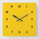 Minimal yellow wall clock with numbers in a cartoonish font.