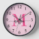 Horloge Chaud rose moderne Script Girl Monogramme Nom