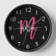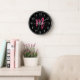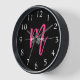 Horloge Chaud rose noir moderne Script Girl Monogramme Nom