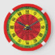 Roue représentant les signes chinois du zodiaque et les années auxquelles ils se rapportent, en couleurs rouge, vert et jaune