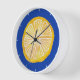 Coloré et fruité, agrumes tranche de citron méditerranéen horloge murale d'inspiration méditerranéenne. La couleur Arrière - plan peut être modifiée dans l'outil de conception. Oeuvre d'artistes propres illustrations. Contactez-moi si vous souhaitez obtenir de l'aide sur la personnalisation ou des demandes spéciales. c) Zoe Chapman Design