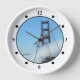 Towers of Golden Gate poke through clouds of fog, reste sur le roadway. Black numerals appear on a white background in a circle resembling a porthole.