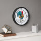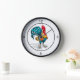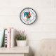 Cette horloge ronde est présentée avec une jolie gravure colorée de coq de ferme. Acheter tel quel ou personnaliser. Image stock. freepik.com