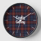 L'horloge murale élégante dispose de l'arrière - plan tartan de Comté Galway avec une face d'horloge blanche et du texte central personnalisable.