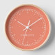 Simpe, élégante horloge murale de nom personnalisé dans un style minimaliste moderne en rose corail. Cela peut facilement être personnalisé avec le nom ou le monogramme d'un être cher pour un parfait d'un cadeau gentil.