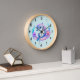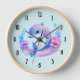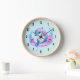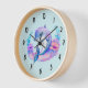 Une horloge avec une illustration adorable. Un dauphin bleu et violet entouré de jolies fleurs sous-marines colorées.