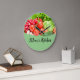 Horloges murales de cuisine amusantes pour Maman conçu avec un graphique coloré de fruits frais et espace de nom vous pouvez personnaliser en ligne avec le nom de votre Mère ou utiliser notre design comme il est montré. Fait un grand cadeau de ménage pour maman.