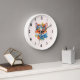 Une horloge avec l'illustration d'un adorable portrait de renard avec une couronne et un collier bleu et orange.