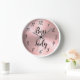 Sur cette horloge élégante est un design incorpore un feutre métallique brossé rose brossé avec les mots "Boss Lady" avec un script élégant qui peut être personnalisé avec une lettre, logo ou nom ou garder tel quel. Vibes élégantes et élégantes.