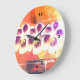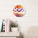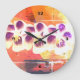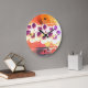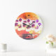 Fleurs blanches et violettes, jaunes, orange, fond rouge. Conception de collage d'art abstrait sur horloge murale.