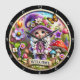 Cette horloge ronde enchanteresse présente un nain adorable avec un grand chapeau violet orné de fleurs, entouré de fleurs vibrantes et de champignons fantaisistes. Un papillon voltige à proximité, et une banderole en bas indique "BIENVENUE". C'est une pièce charmante parfaite pour ajouter une touche de fantaisie à n'importe quelle pièce. Idéal pour les nurseries, les salons, ou comme un cadeau unique, apportant un sentiment de magie et de chaleur.