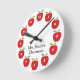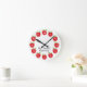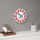Cette horloge de classe offre des pommes rouges sur un arrière - plan blanc. Chaque numéro est sur une pomme 24 heures sur 24. Personnalisez cette horloge amusante avec le nom du professeur.