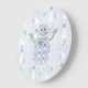 Quatre carrés de bleu pâle et de violet sont décorés de bonhommes de neige en chapeaux et vêtements d'hiver, comme des toboggans, des foulards et des mitaines. La couture blanche ajoute une touche décorative, donnant au motif répétitif l'aspect d'une courtepointe, créant une sensation de douceur pour l'hiver. La forme d'un bonhomme de neige crée un masque pour le design pour ajouter une touche saisonnière finale.