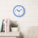Motif nautique rétro amusant horloge en bleu et blanc croustillant grand nombre jouant pour la cuisine côtière.