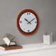 Une horloge de cuisine ronde simple en rouge et blanc, avec de grands chiffres noirs.