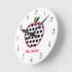 Une horloge pour les enseignants avec l'illustration d'une pomme à pois de polka. Personnalisez avec le nom de votre professeur en rose.