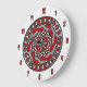 Ce design de cercle concentrique contient des couches de motifs géométriques qui ressemblent à des engrenages que l'on retrouve dans les machines modernes ou même aliens, dans des tons de rouge et de gris.