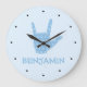Cette horloge de nom de garçon avec un signe "je t'aime" en langue des signes américaine (LSA) et un motif de points bleus est parfaite pour une nurserie ou une chambre de garçon. Le nom peut être personnalisé avec n'importe quel nom ou texte.
