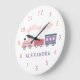 Cette horloge "en voiture" de train à vapeur pour la chambre des filles/enfants/nurserie présente le nom de l'enfant sur fond blanc avec un train à vapeur rose et violet. Personnalisez-la selon vos besoins. Vous pouvez trouver des produits assortis dans ma boutique.