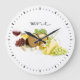 Elégante horloge sur le thème du vin pour un connaisseur du vin. L'horloge présente du vin, du raisin et des fromages pour un design appétissant ! Une pendule parfaite pour un coin cuisine, un coin repas ou un bar à vin.