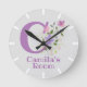Horloge Des Enfants. Le design présente Monogram & Name avec Fleurs de chaque côté dans un style pastel couleur eau. Exemple : Camila. Changez le nom comme souhaité pour toute personne ayant un nom commençant par C.