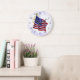 Une horloge murale avec une illustration vintage d'un drapeau américain en rouge, blanc et bleu rétro, flottant fièrement dans la brise et des chiffres noirs antiques. Cliquez sur Personnaliser pour ajouter votre nom ou message.