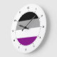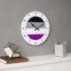 Horloges aux murs ronds avec asexualité drapeau de fierté avec motif rayé noir, gris, blanc et violet avec design