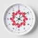 Horloge avec un design avec le drapeau de la préfecture de Saitama au Japon (埼 県, Saitama-ken), un drapeau blanc avec un symbole rouge, avec la face de l'horloge kanji