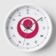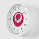 Horloge avec un design avec le drapeau de la préfecture d'Okinawa au Japon (沖 県, Okinawa-ken), un drapeau blanc avec un symbole rouge, avec une face d'horloge kanji