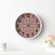 Cette horloge murale a un design boho de fleurs de corail se répétant à travers le design sur un champ de vert.